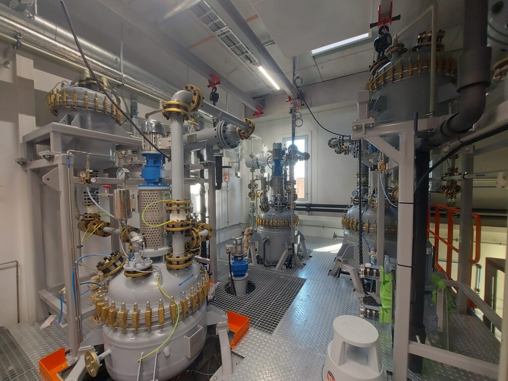 The site comprises approximately 1,000 m² of GMP-certified laboratories and production areas, supporting seamless progression from route design and process optimisation through scale-up and clinical batch supply. Eight dedicated cGMP production rooms enable flexible batch sizes from milligram quantities to 150 L scale.